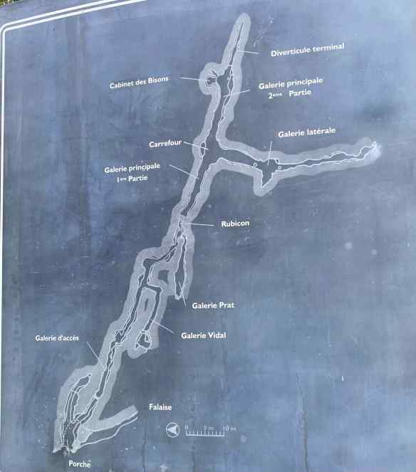 There are more than 200 painted and engraved figures in Fonte de Gaume organized into compositions in the four main sections of this 120 meter long cave. We visited all but the narrowest section in the Diverticule teminal and the short cave on the right of the entrance.