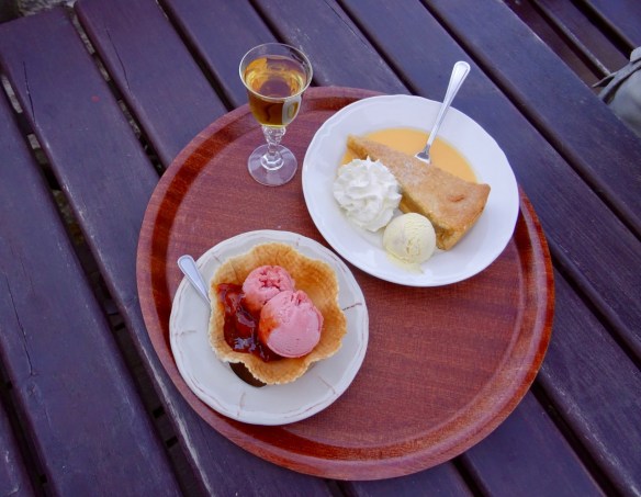 We stop for dessert at a little outdoor cafe on the abbey grounds, some homemade pie, sherbet and Benedictine Brandy for Bob.