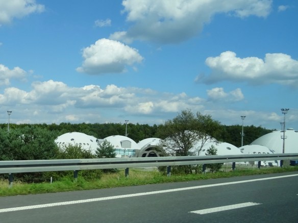 Back on the highway on our way to Wroclaw. We passed these domes before on our way to Krakow. They are connected by glass tunnels. No idea what it is, but it certainly looks interesting.